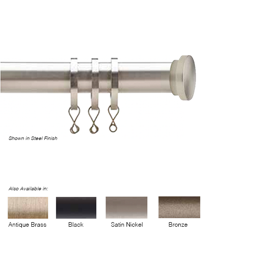 Newport Custom Cut Curtain Rod with Tapa Finial Available in 5 finishes