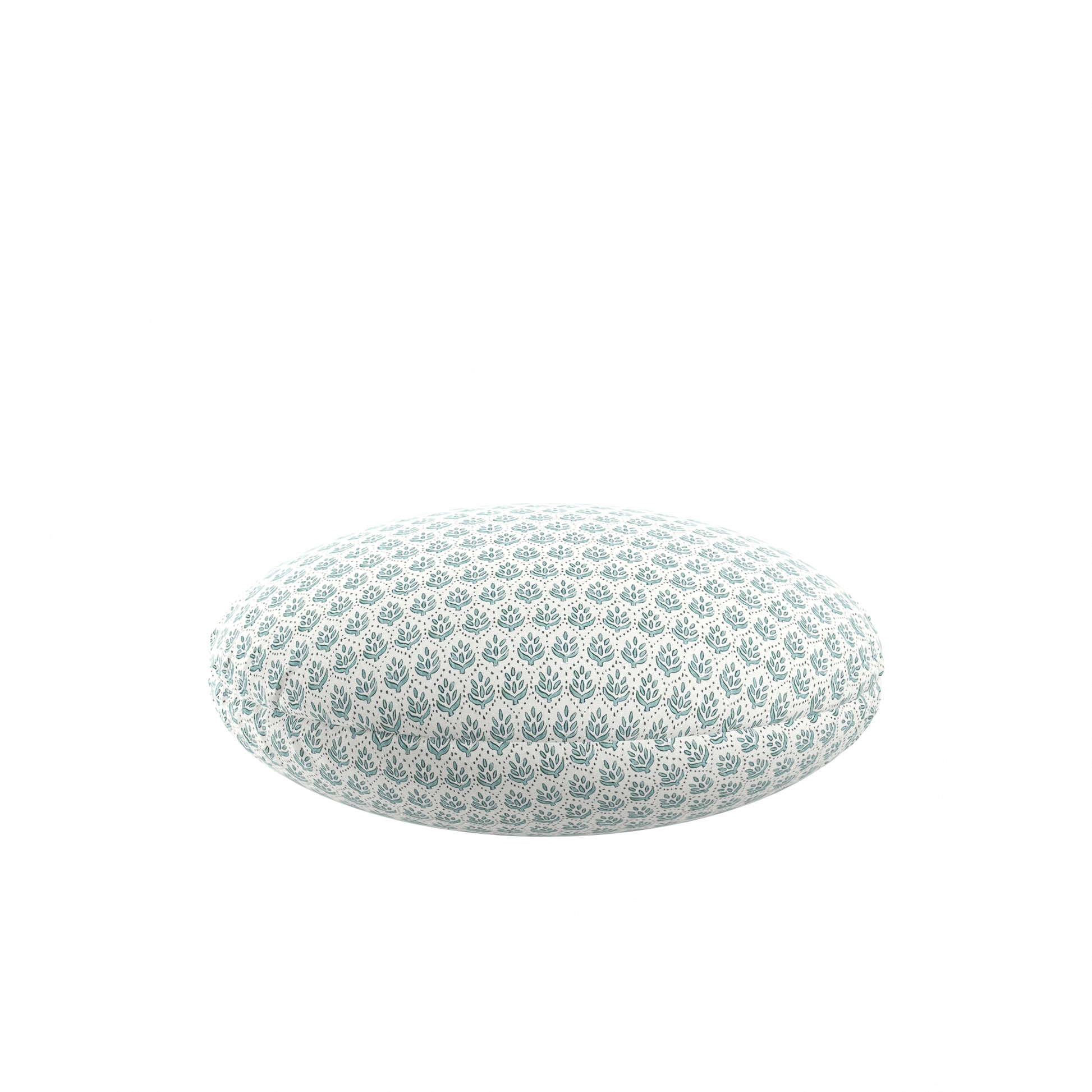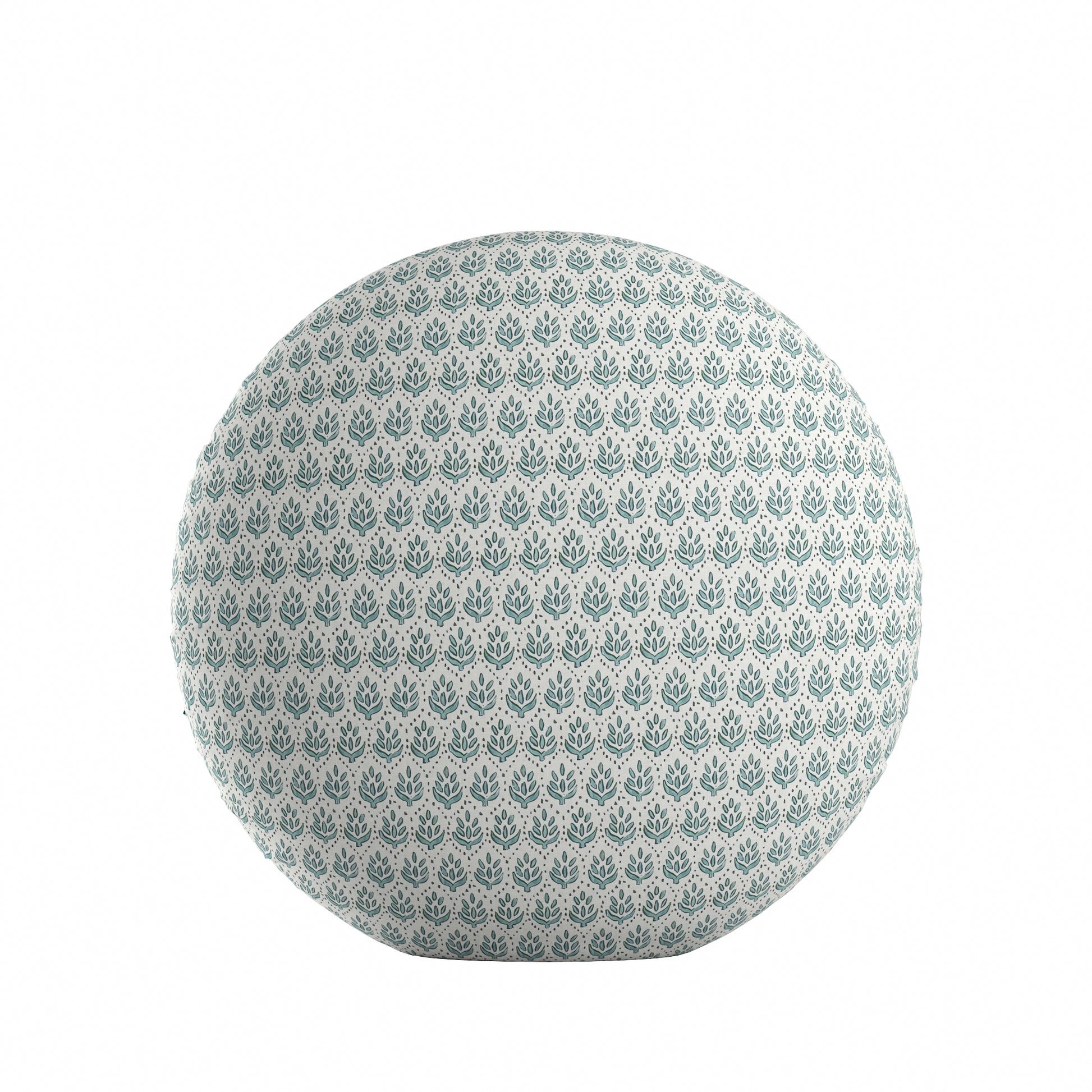 Circular Throw Pillow in Leaf Me Alone Minty Blue