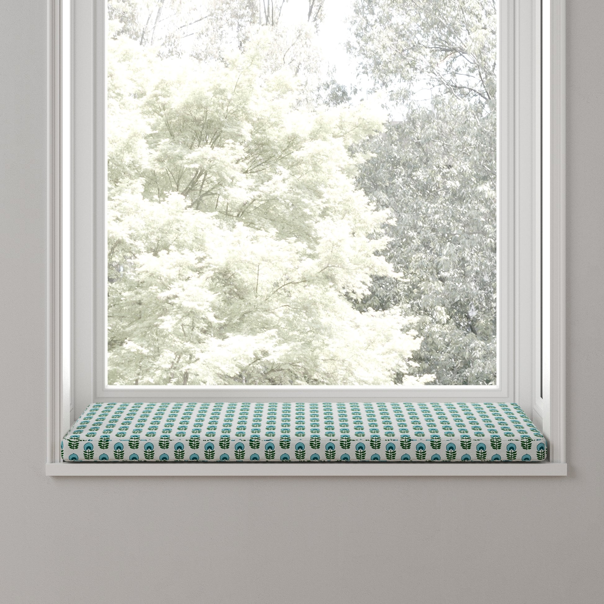 Custom Bench Cushion in Mini Florals - Mountain Teal
