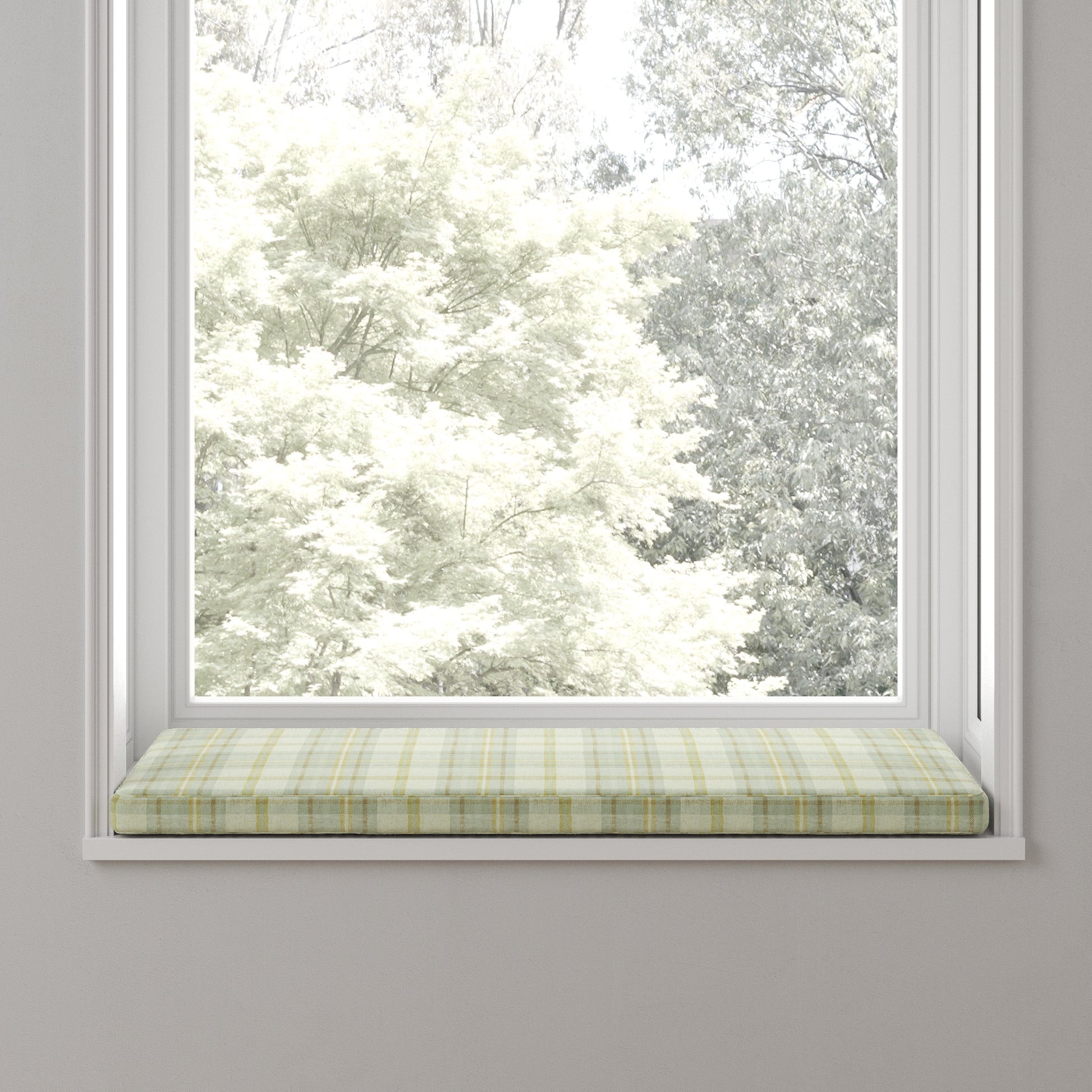 Custom Bench Cushion in Summer Plaid - Stone