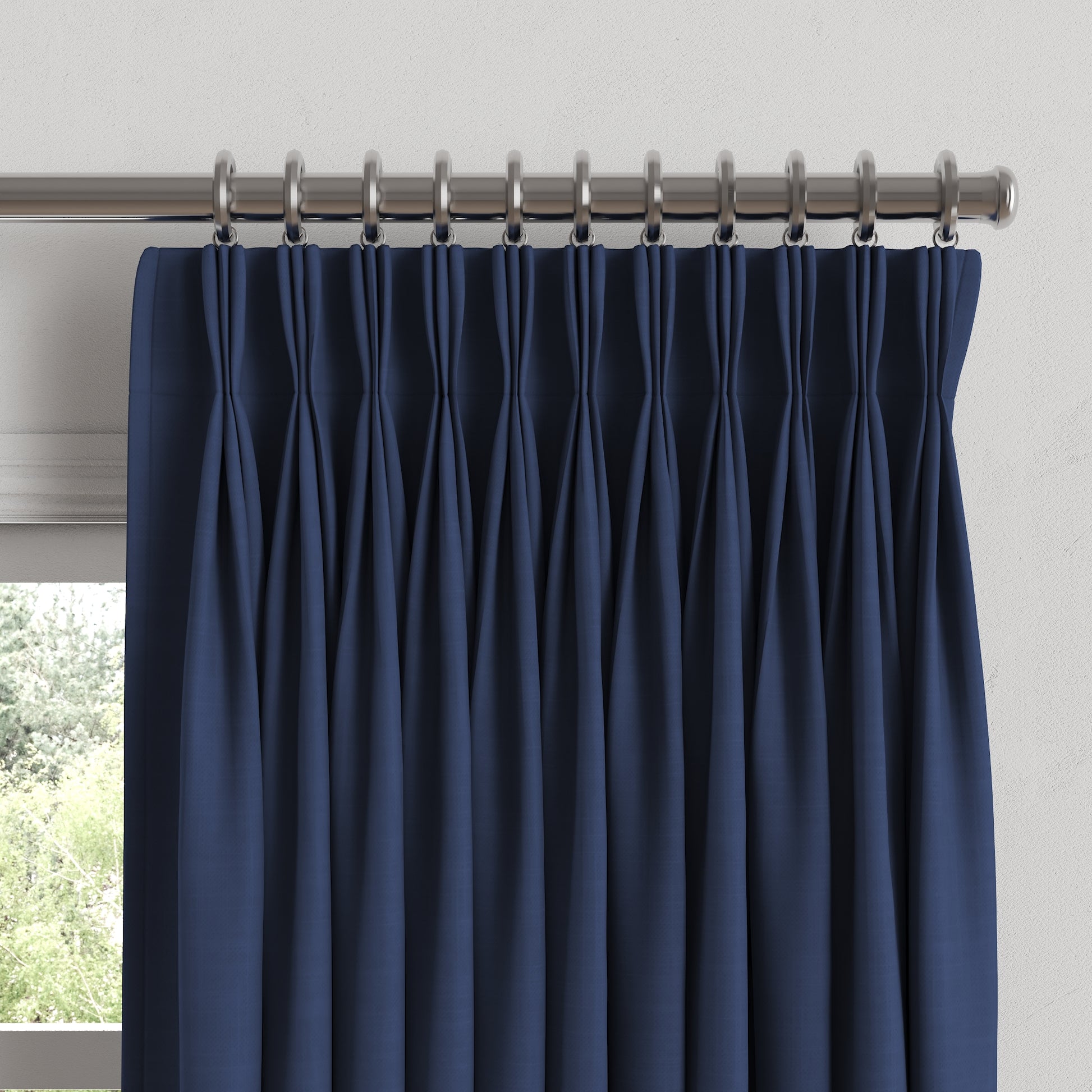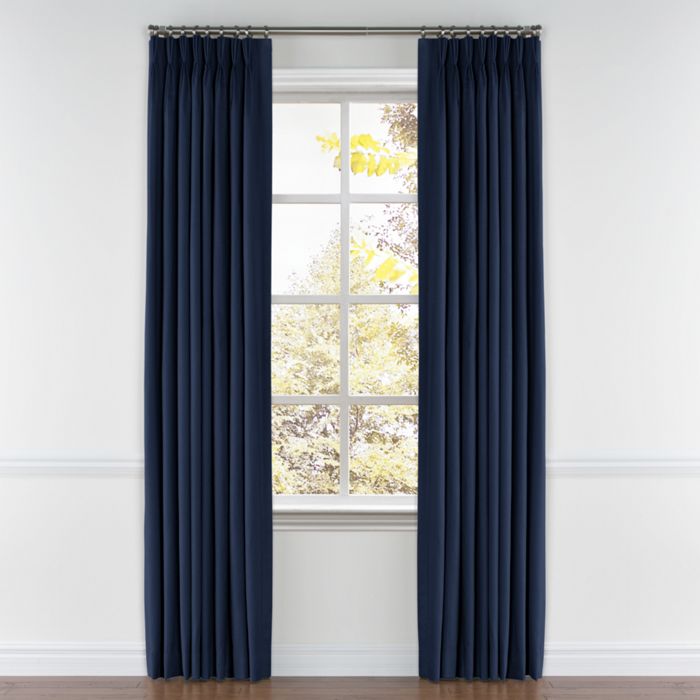 Our custom Pinch Pleat Drapery is as functional as it is beautiful. This traditional triple pinch-pleated curtain style offers elegant fullness and a slightly more formal feel perfect for living, dining and master bedrooms. We love it in this durable linen masterfully woven in intense dark blue. Enjoy classic style that's rich, simple and luxurious.
