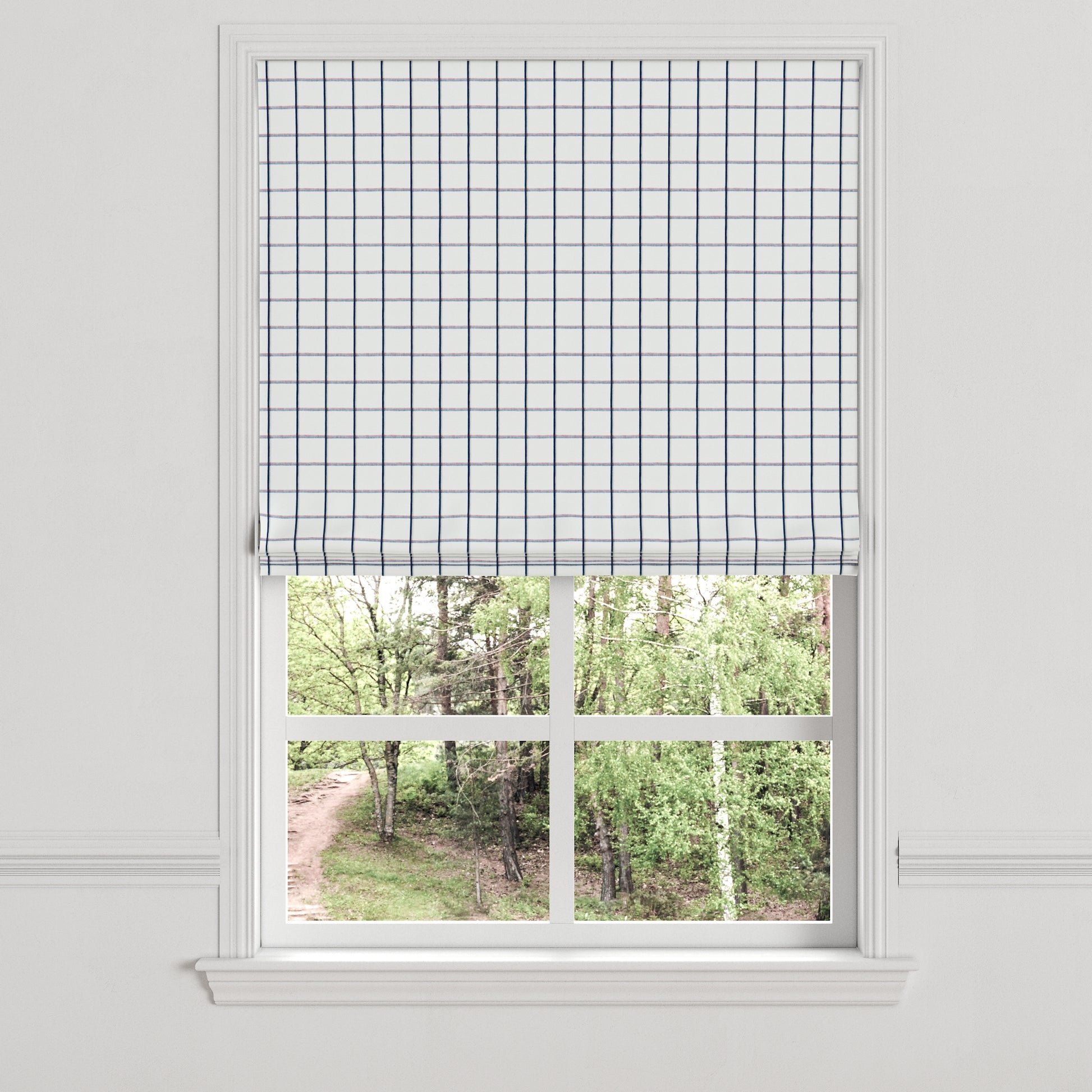 Flat Roman Shade in Check With Me - White