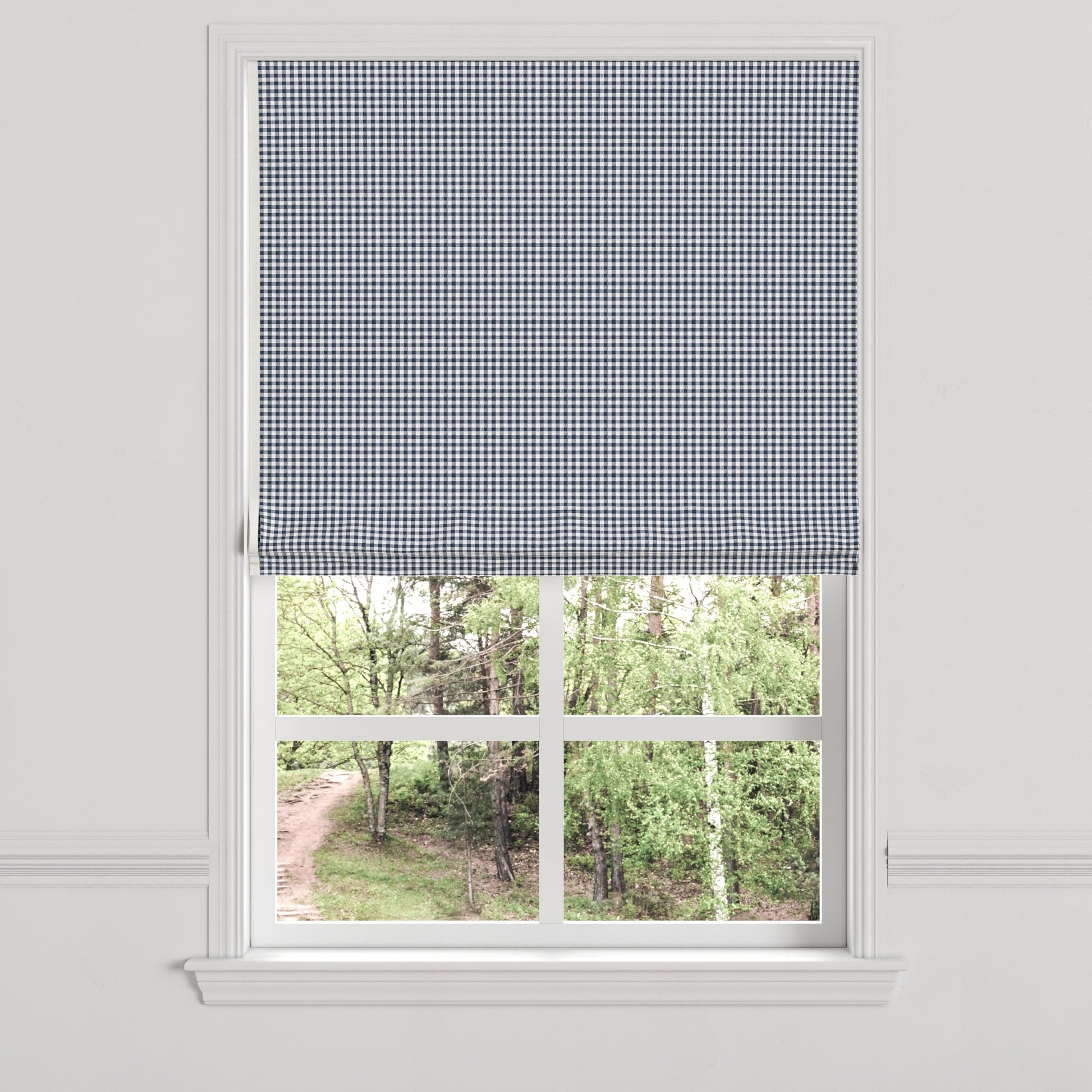 Flat Roman Shade | Gingham - Navy