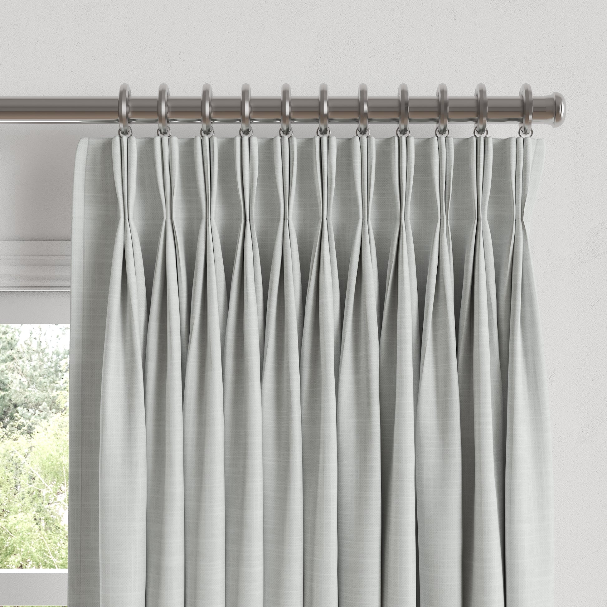 - Triple pleats pinched 4” from the top