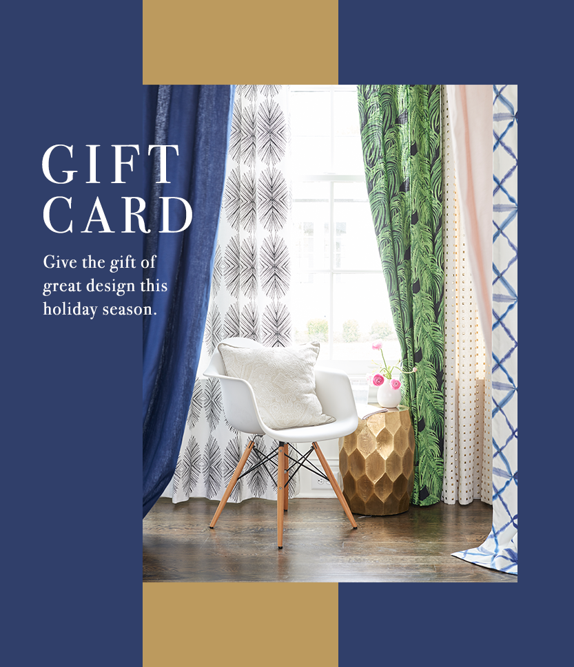 With a Loom Decor eGift Card, you’re not just giving a gift card, you’re giving them a whole decorating experience. Your giftee will design their own custom home furnishings online, or work with a personal Loom Stylist to coordinate the perfect look.