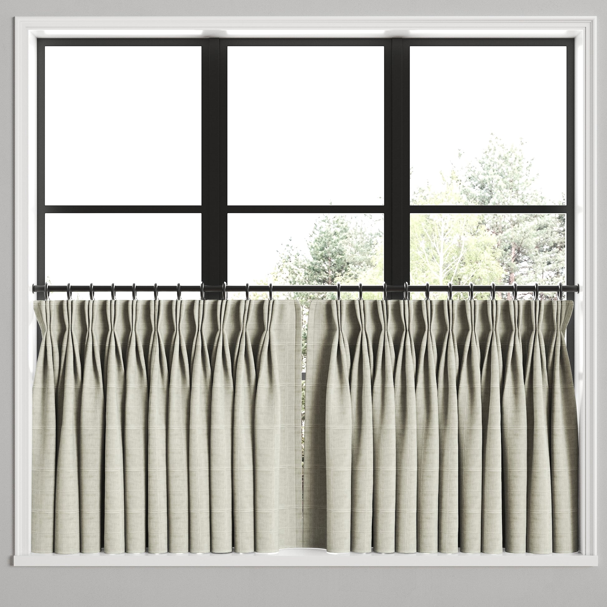 Pinch Pleat Cafe Curtains in Moray Dove