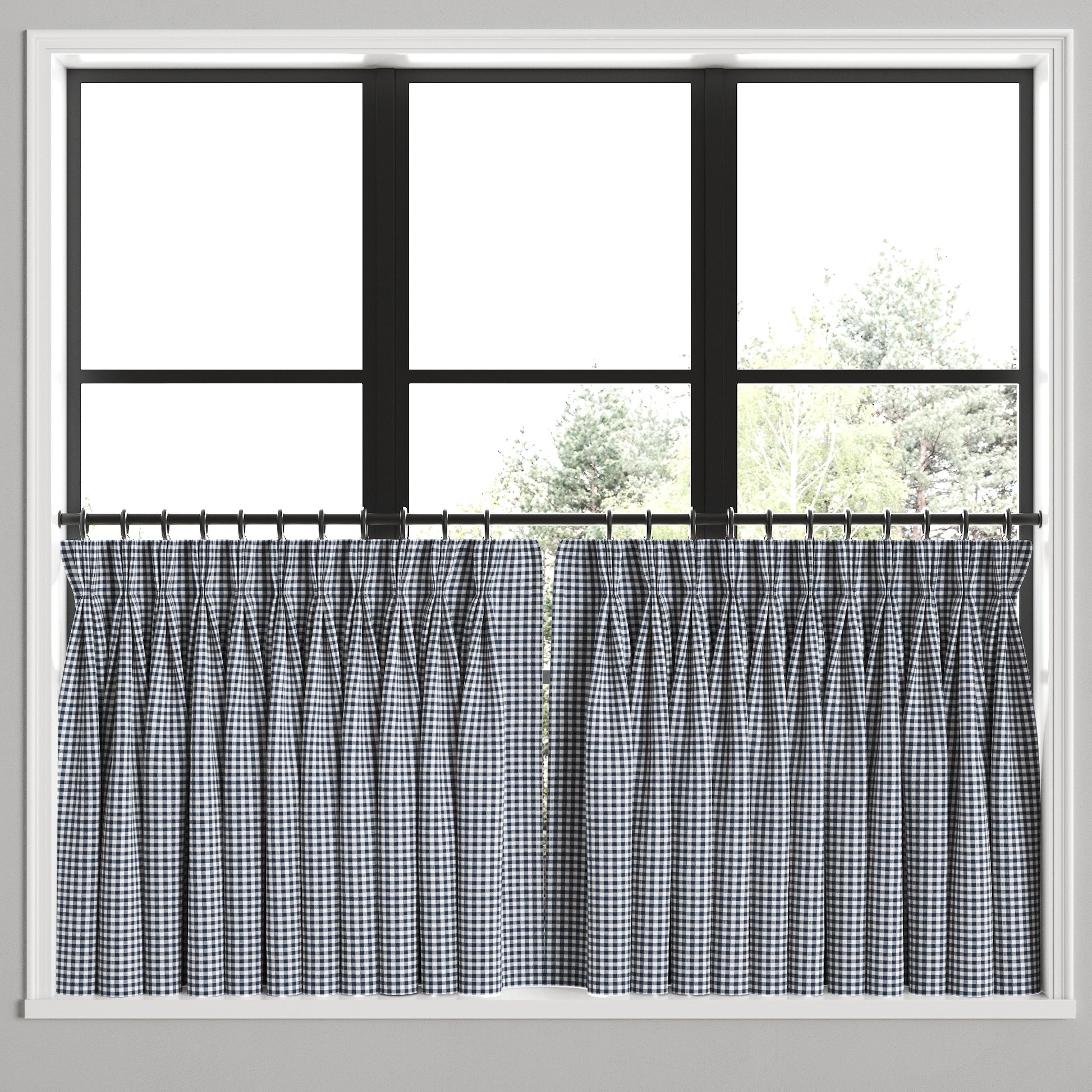 Pinch Pleat Cafe Curtains | Gingham - Navy