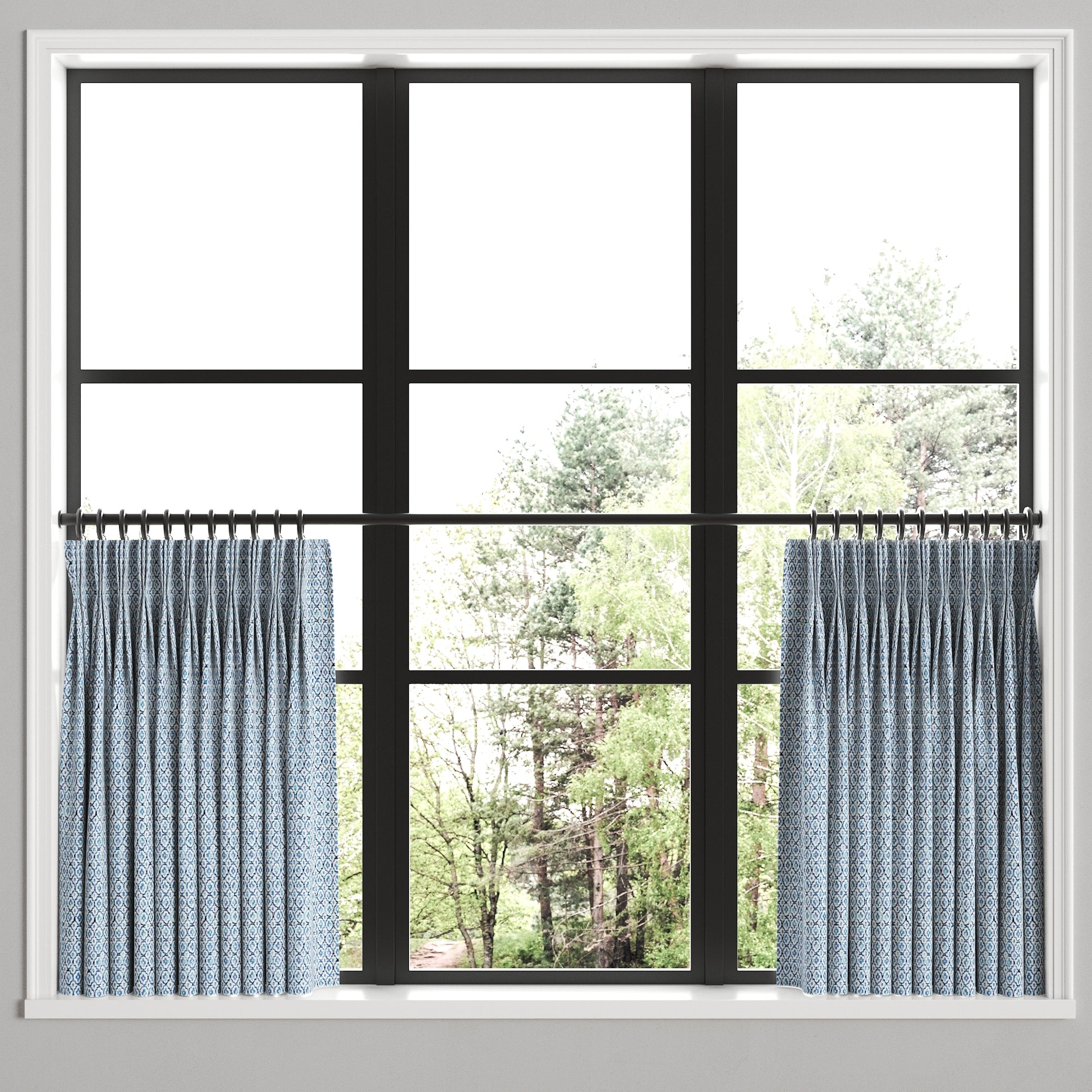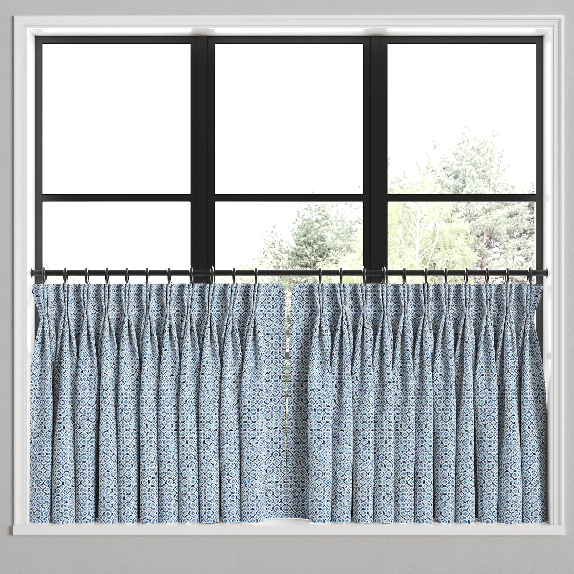 Pinch Pleat Cafe Curtains | Positive Print - Azure