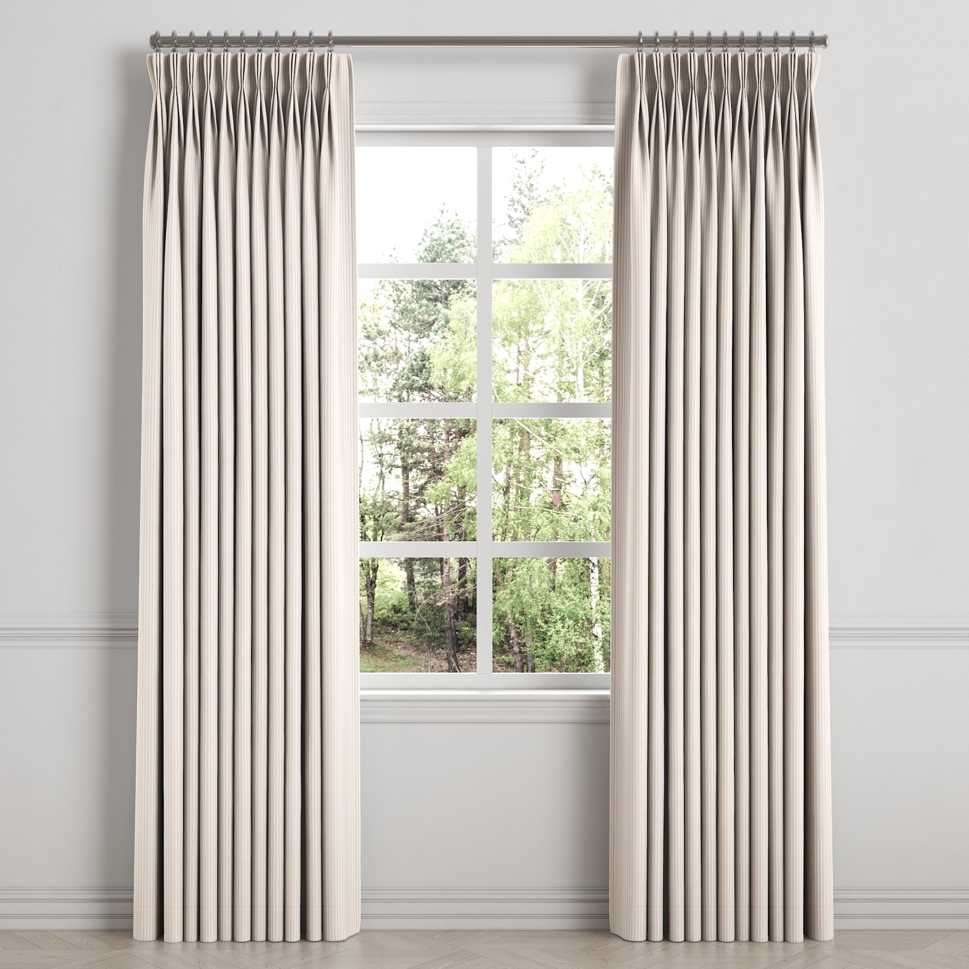 Our custom Pinch Pleat Drapery is as functional as it is beautiful. This traditional triple pinch-pleated style offers elegant fullness and a slightly more formal feel perfect for living, dining and master bedrooms.