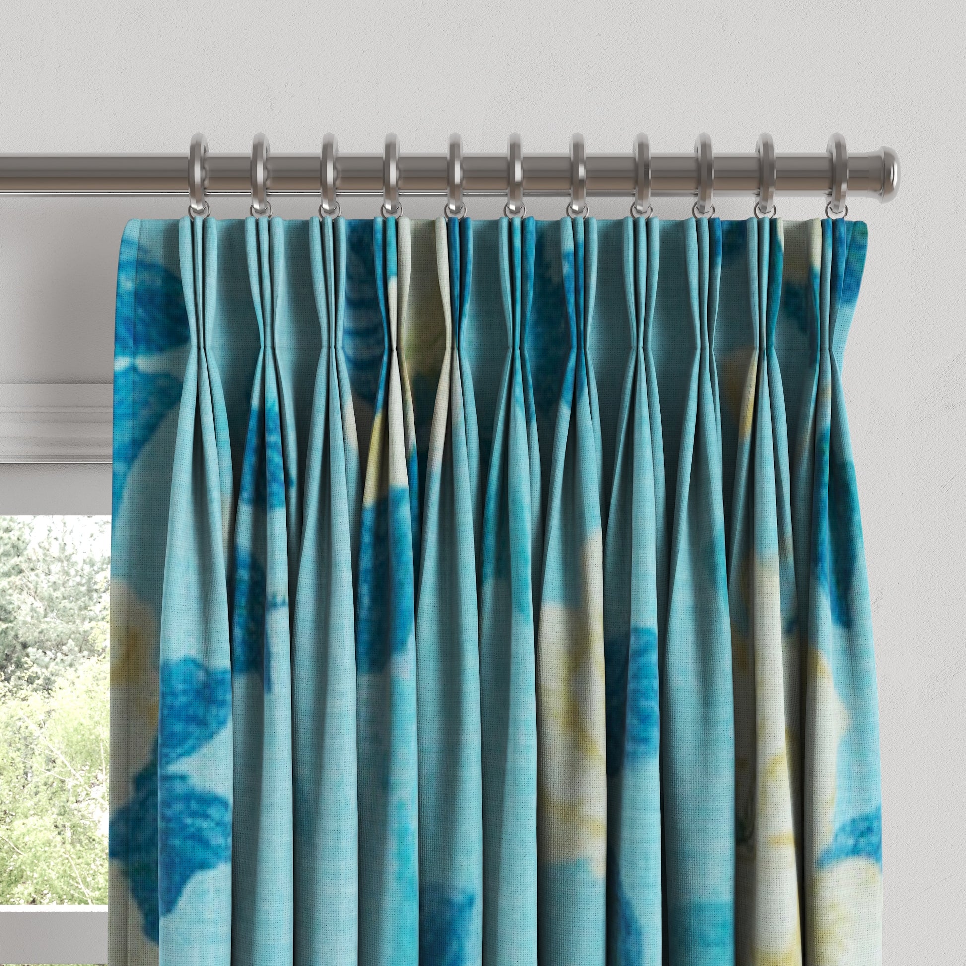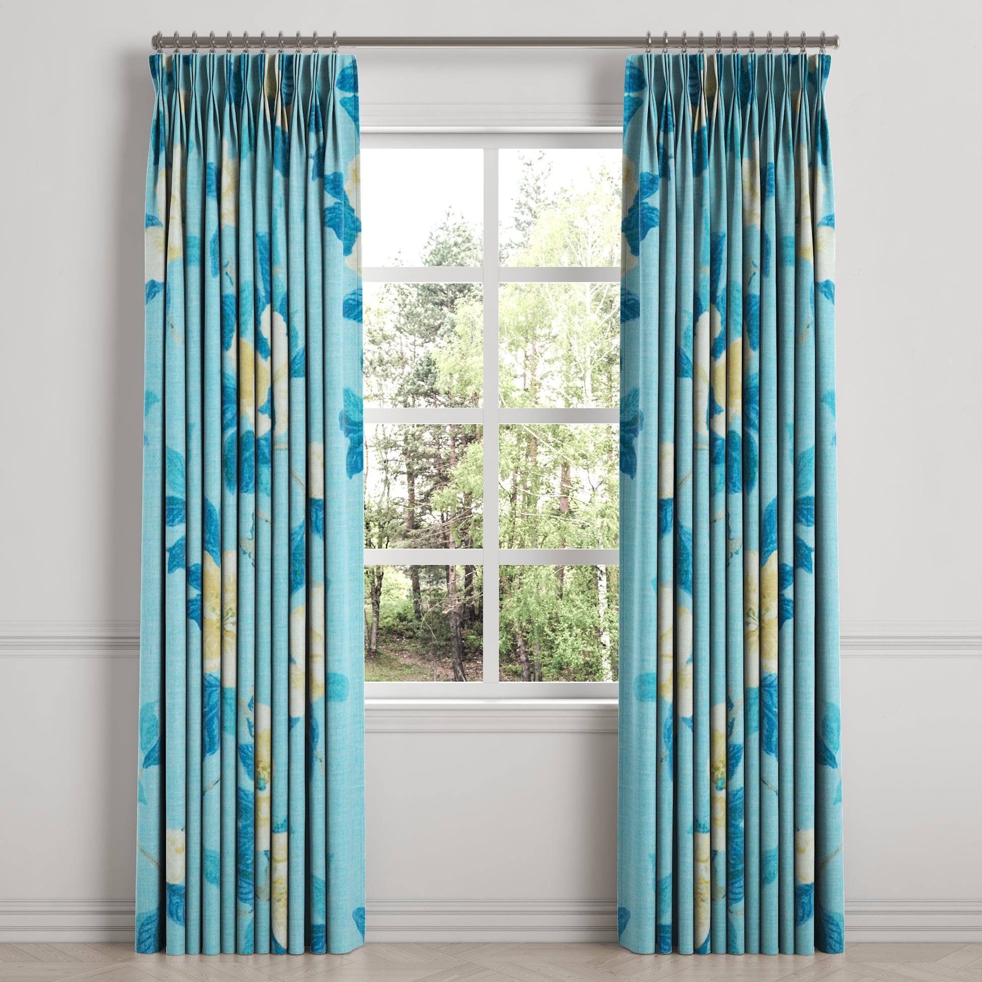 Pinch Pleat Drapery | Grandma's Floral - Pale Blue