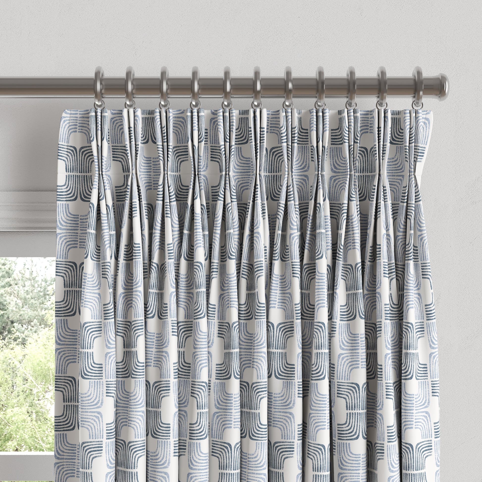 Pinch Pleat Drapery in Groovy - Denim