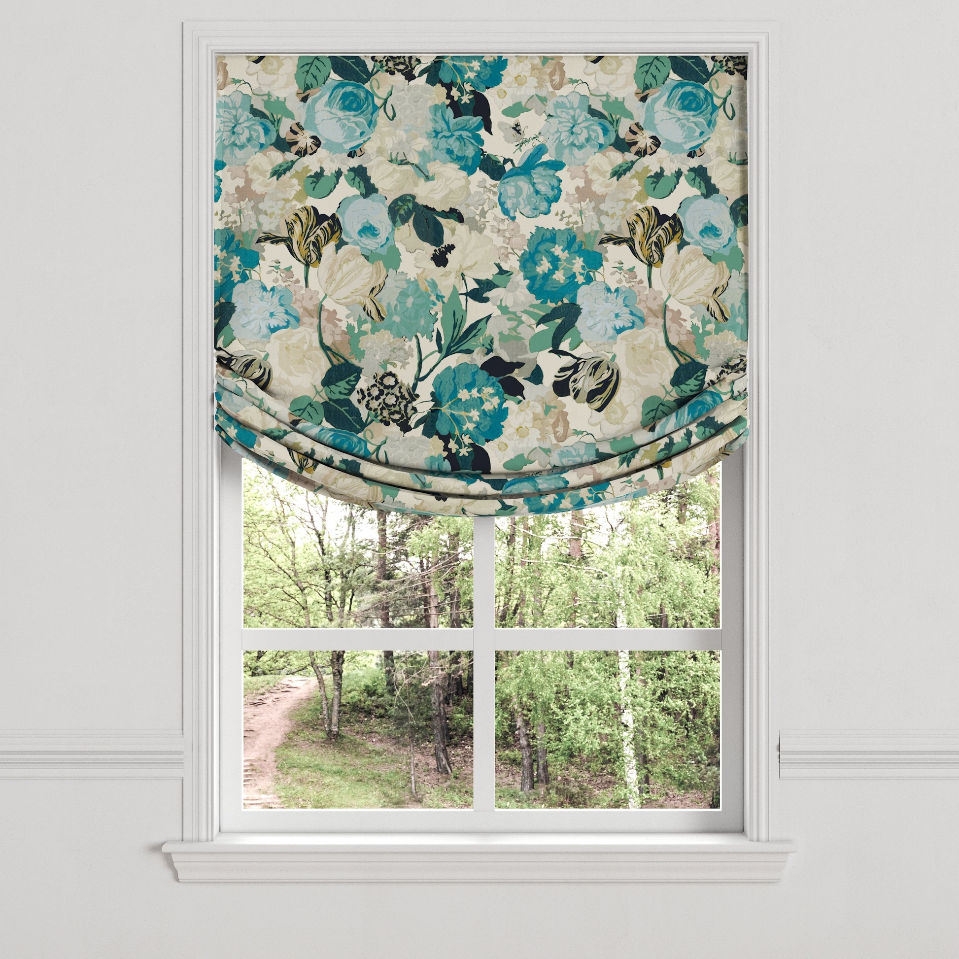 Relaxed Roman Shade in Garden Tea Time - Blue Haze