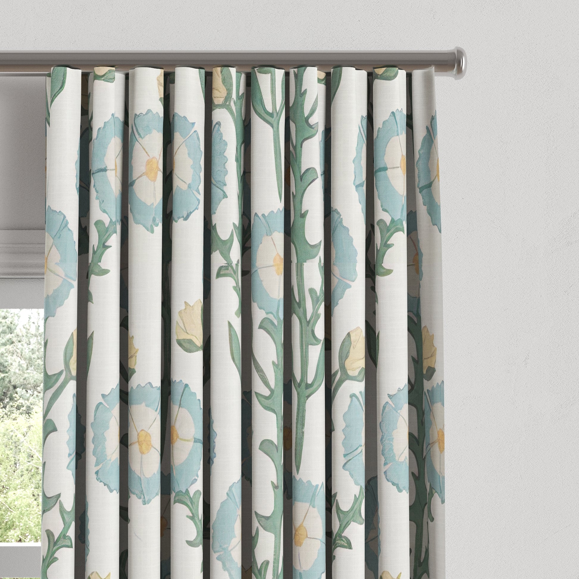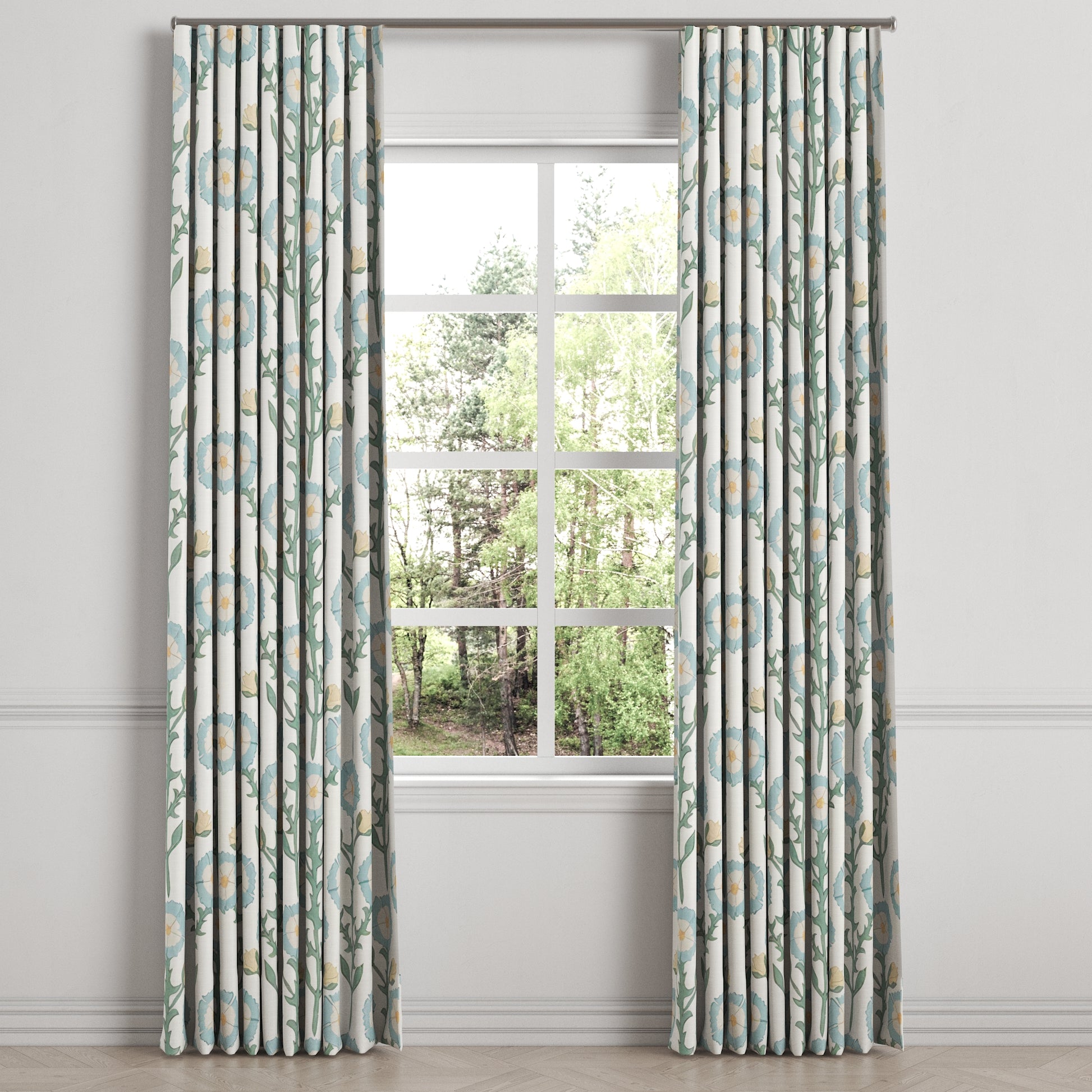 Ripplefold Drapery in Cottage Flowers - Cool Blue