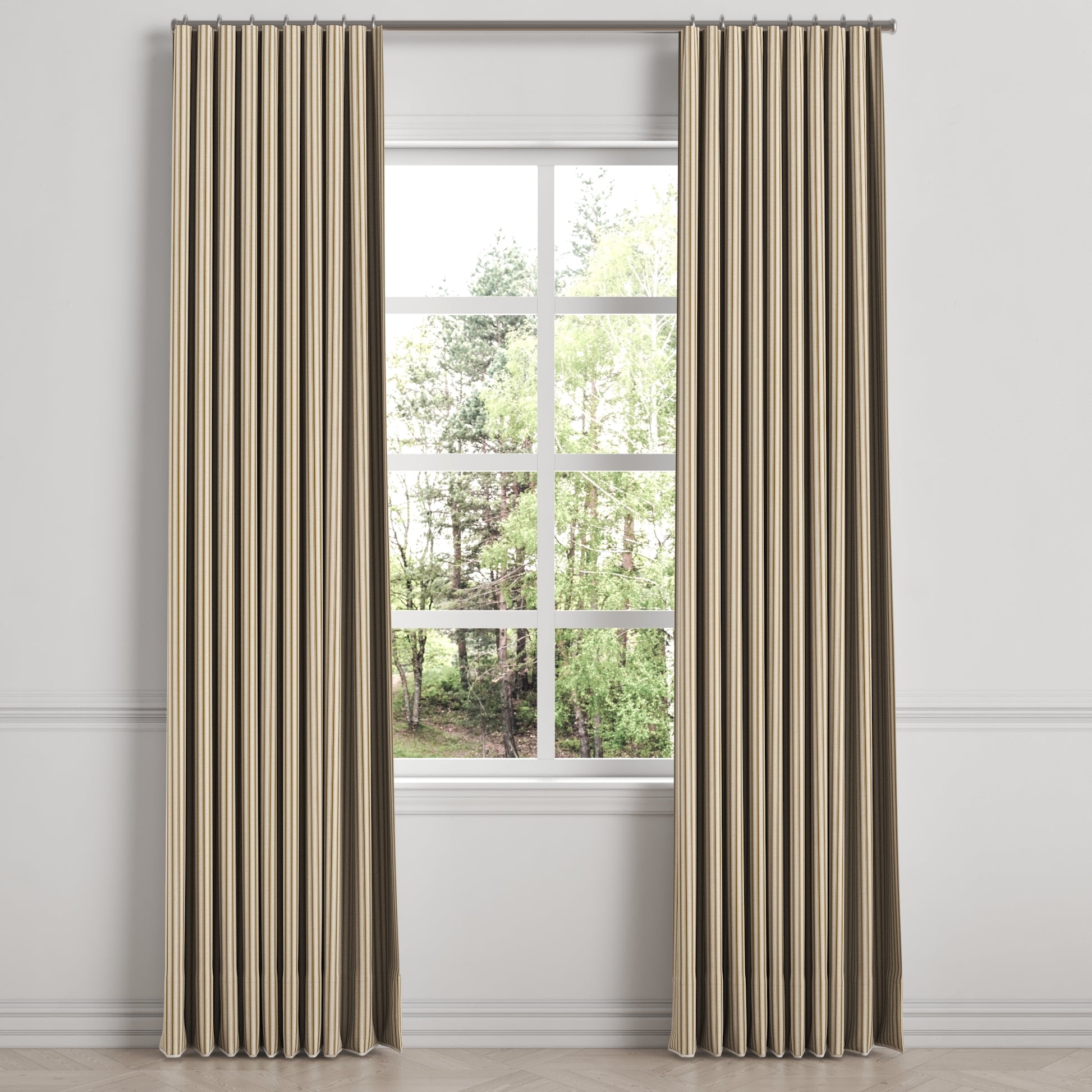 Ripplefold Drapery in Little White Line - Cognac