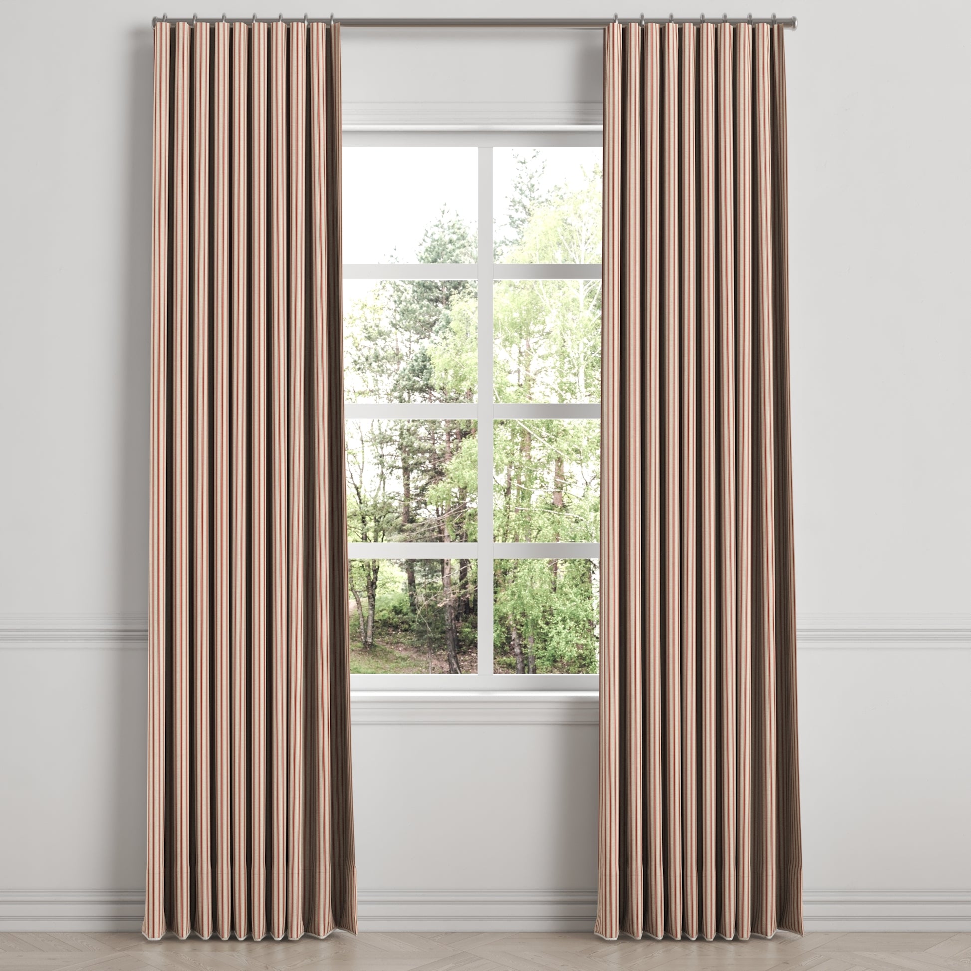 Ripplefold Drapery in Little White Line - Red