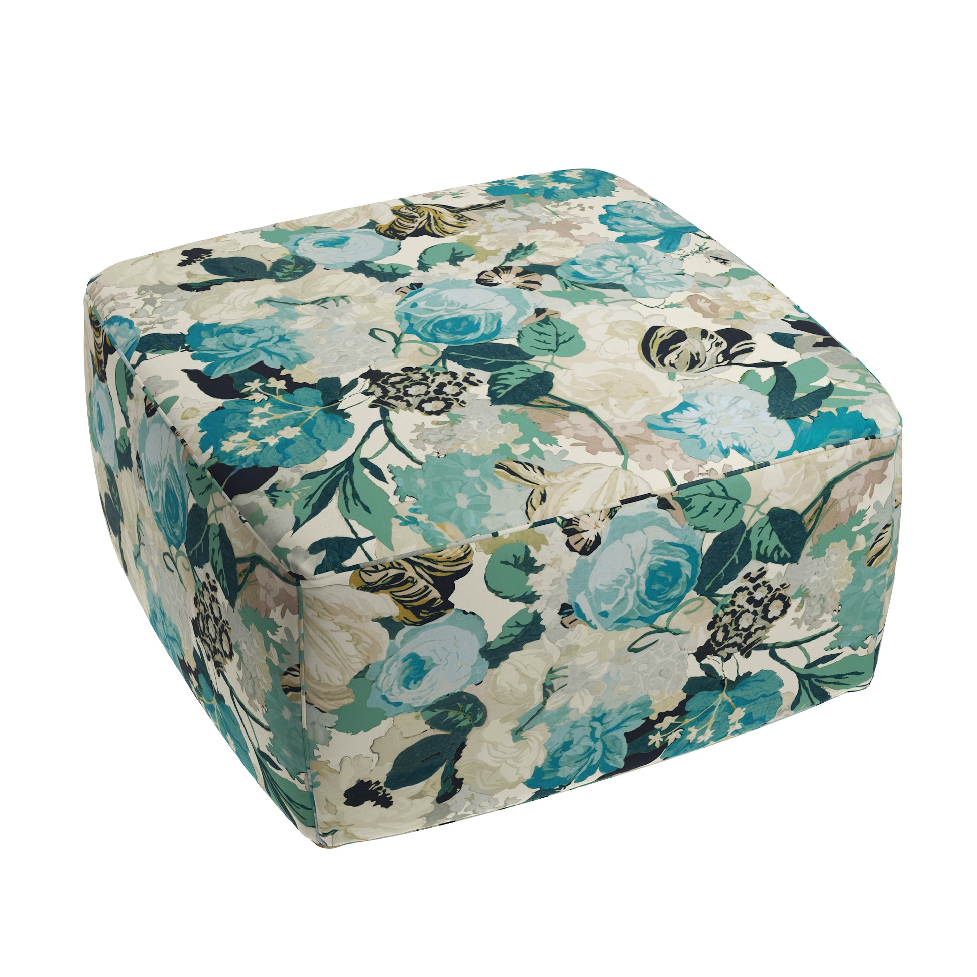 Square Pouf in Garden Tea Time - Blue Haze