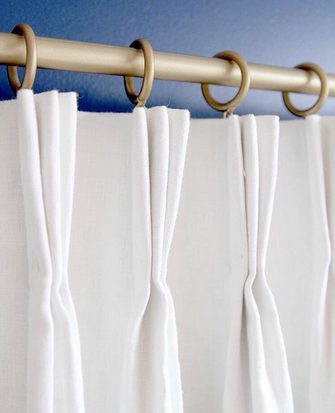 - Triple pleats pinched 4” from the top